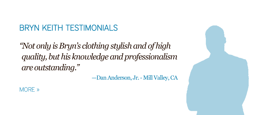 All of our garments are hand cut and sewn with your specifications in mind. Our highly trained professionals, save you time and money, by coming to you. Bryn Keith's apparel consultants plan and coordinate your wardrobe so you are perfectly attired for all occasions – formal, business, casual or social. We offer an unparalleled selection in both the latest and classic styles. You can choose from more than 350 suit 400 shirt fabrics. Careful and exact measurements guarantee that every garment is tailored to your body style and personal taste- for every wear.